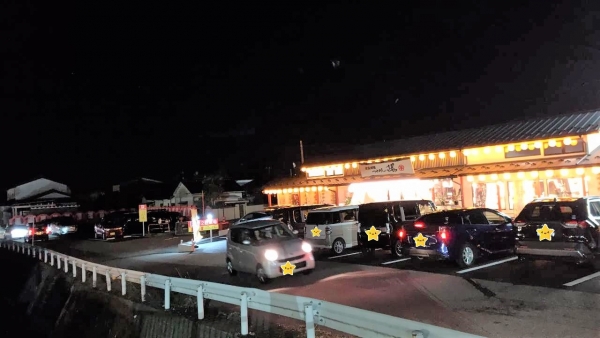 華やかな外観ですデン!とそびえる屋根上のサインと、6m超えの素敵な暖簾が目を引きます玄関先では親子...